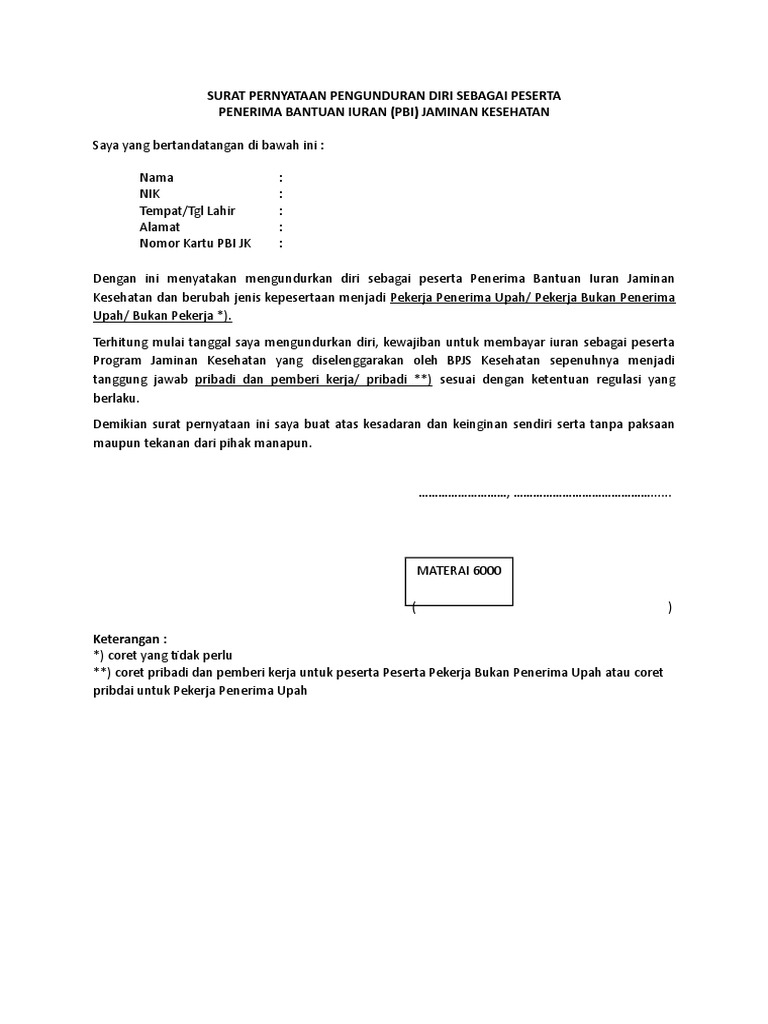 | Lihat Surat Pernyataan Pengunduran Diri Sebagai Peserta Pbi Pdf |